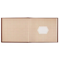 - Cloth book cover features a die-cut window, satin ribbon with charm and gold foil accents.