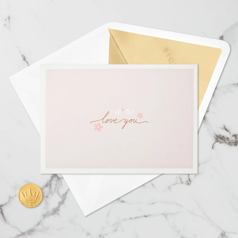 Pop-up Valentine’s Day greeting card features a “Love you” message and tiny white birds on a soft pink background. Simply open the card to reveal the 3D pop-up surprise inside—no assembly required: an intricate, laser-cut cherry tree pops up, with a froth of pink glittery blooms and a white swing hanging from its branches. This romantic card crafted from premium card stock is a work of art sure to be displayed all year long, making it an unforgettable way to share a message of love on Valentine’s Day. When open, card lays flat for display; 3D pop-up inside measures approx. 5.75″ H.
